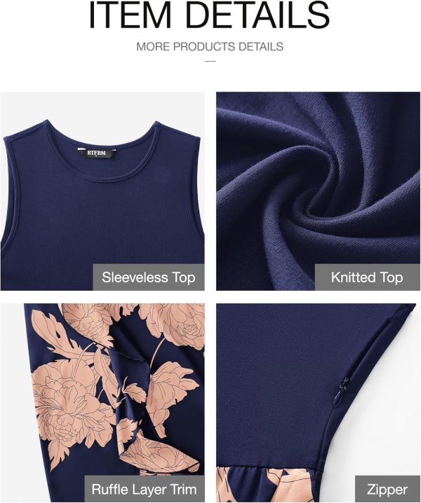 BTFBM Women Casual Sleeveless Summer Dresses 2025 Spring Crewneck Patchwork Boho Floral Ruffle Cocktail Party Midi Dress
