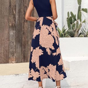 Sleeveless Dresses For Women Casual SummerCrew Neck Patchwork Modest Dresses For Women