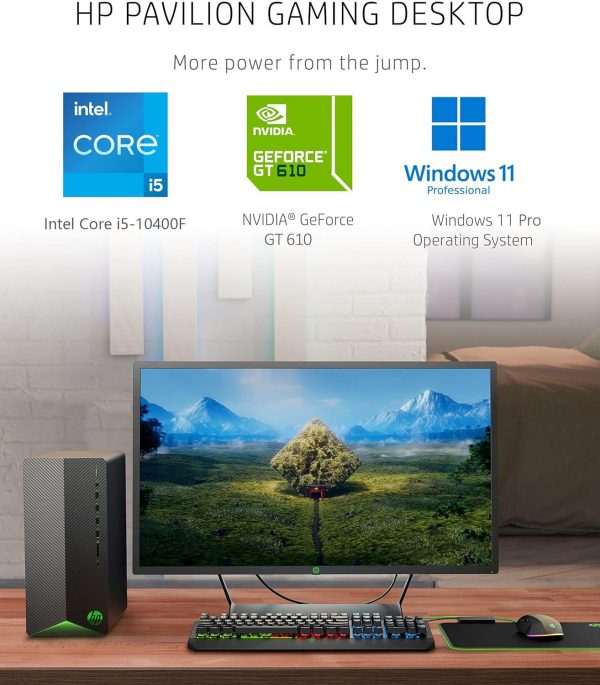 HP Pavilion Tower PC Desktop Computer, 32GB DDR4 RAM, 1TB PCIe SSD, Intel 6-Core i5-10400F (Beat i7-8700), GeForce GT 610 2GB, WiFi Adapter, RJ45, Type-C, HDMI, KB and Mouse, Windows 11 Pro, WE/PGPY