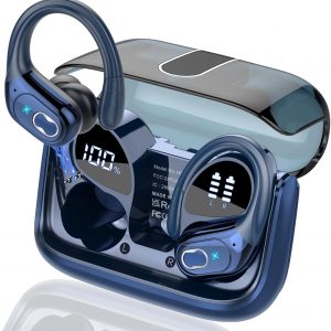 Wireless Earbuds 75hrs Bluetooth 5.4 Headphone Sport, 2025 Bluetooth Earbuds Stereo Deep Bass Over Ear Bud with Earhooks, ENC Noise Cancelling Mic, IPX7 Waterproof Earphone, Royal Blue